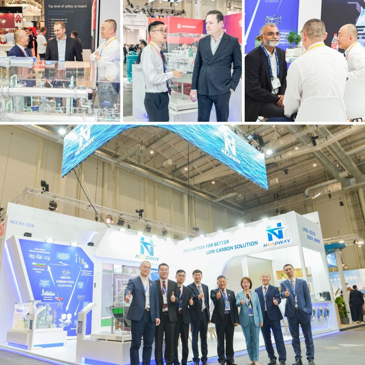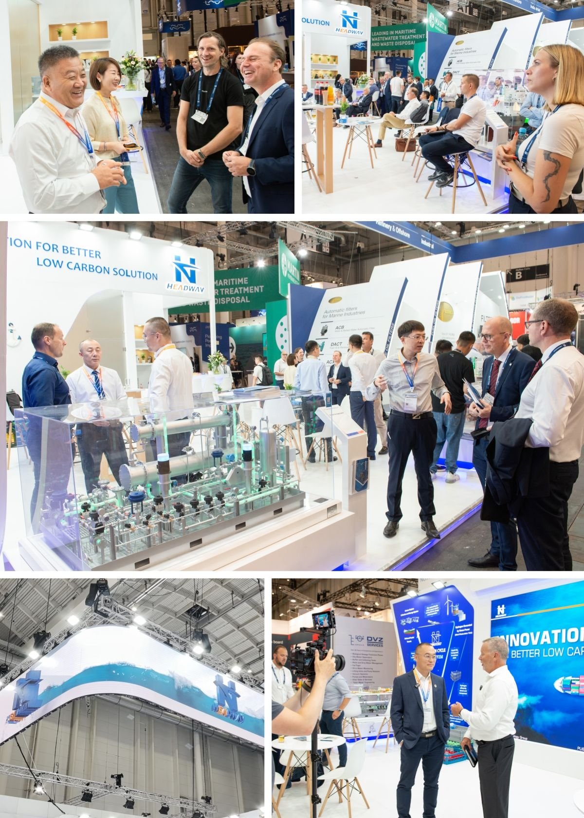 始于1963年的德國漢堡國際海事展覽會(SMM),是目前全球海事界規(guī)模最大、專業(yè)水平最高、影響力最強的國際貿易展覽會。本屆展會現(xiàn)場,海德威展出了涵蓋甲醇燃料供給系統(tǒng)、氨燃料供給系統(tǒng)、船舶尾氣脫硫系統(tǒng)、碳捕集與再利用系統(tǒng)、壓載水處理系統(tǒng)等為核心的低碳航運產品生態(tài),以及固態(tài)儲氫、AEM制氫、二氧化碳加綠氫合成綠色甲醇等行業(yè)最新前沿技術。